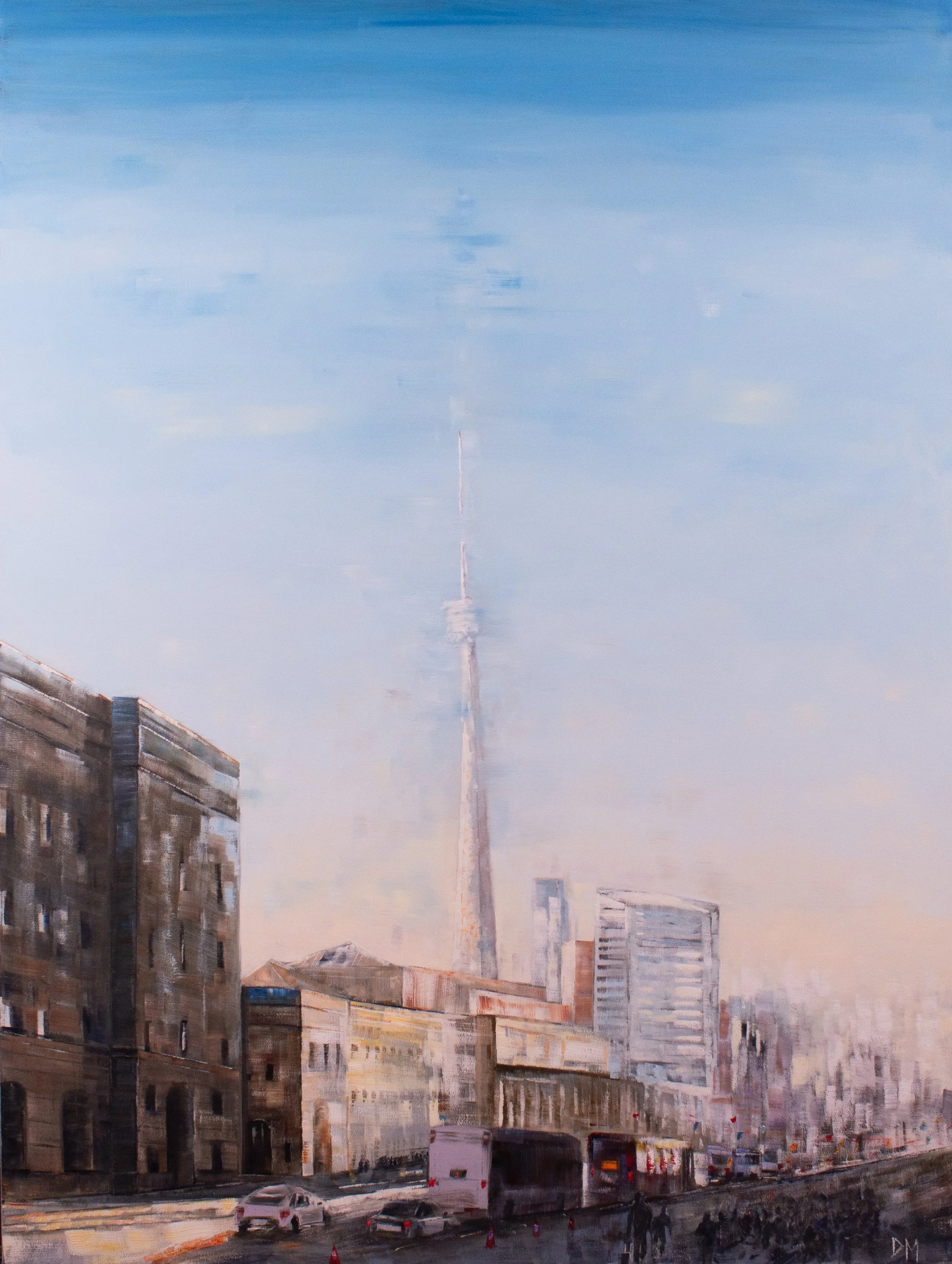 This atmospheric painting captures Union Station with the CN Tower rising softly in the background, blending Toronto’s historic architecture with its modern skyline. Loose brushstrokes and muted tones create a sense of motion and calm, evoking the rhythm of city life at street level. The softened edges and light-filled sky invite the viewer into a moment that feels both familiar and dreamlike—a quiet reflection of Toronto’s energy, history, and constant movement.